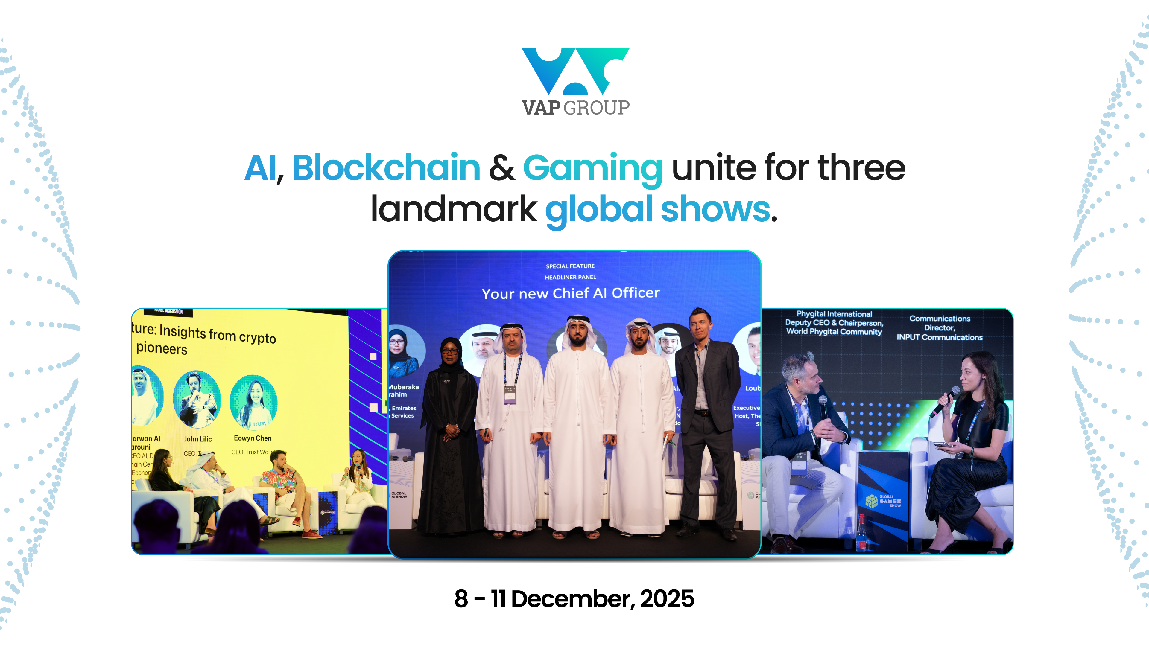 VAP Group will host three flagship AI, Blockchain and Gaming shows in Abu Dhabi from 8–11 Dec 2025, uniting 5,000+ global innovators and industry leaders.